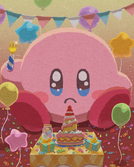 クソ遅れたけど、カービィのグルメフェス1周年おめでとう🎉㊗️ どのスキンも可愛ええけど、マホロア帽子+マルクスキンでやってるわ✋ #カービィのグルメフェス #Kirby #kirbyfanart