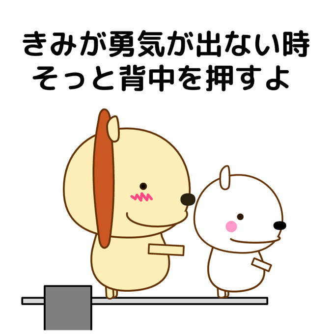 はじめたいのに、やりたいのに 勇気が出ない時ってあるよね そんな時 そっと僕が背中を押すよ 大丈夫 by にゃーてぃん #LINEスタンプ 発売中 #ゆるいイラスト #イラスト好きさんと繋がりたい #illustration #イラスト #ゆるい #Illustrator #ガチャガチャ #絵本 #ゆるい絵