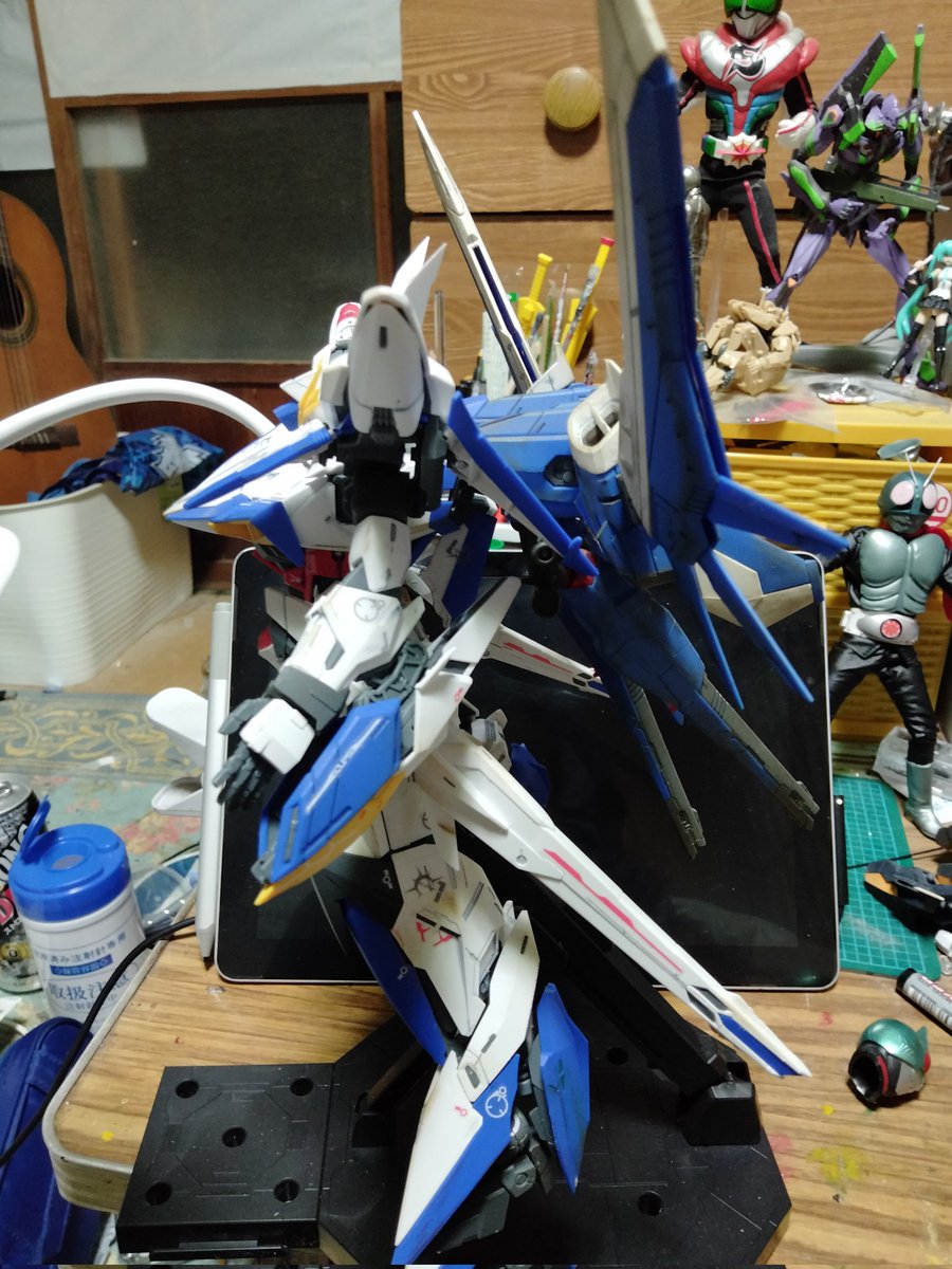 MGエクリプスガンダムお手軽製作完了🎨 手持ちにストライカーパックガンダムなかったので😅ビルドブースター装着してみましたが・・・ トップヘビーになり仰け反ります😅 腰関節強化かな🤔 #ガンプラはどんな自由な発想で作ってもいいんだ #ガンプラの画像貼るとRTされると聞いて