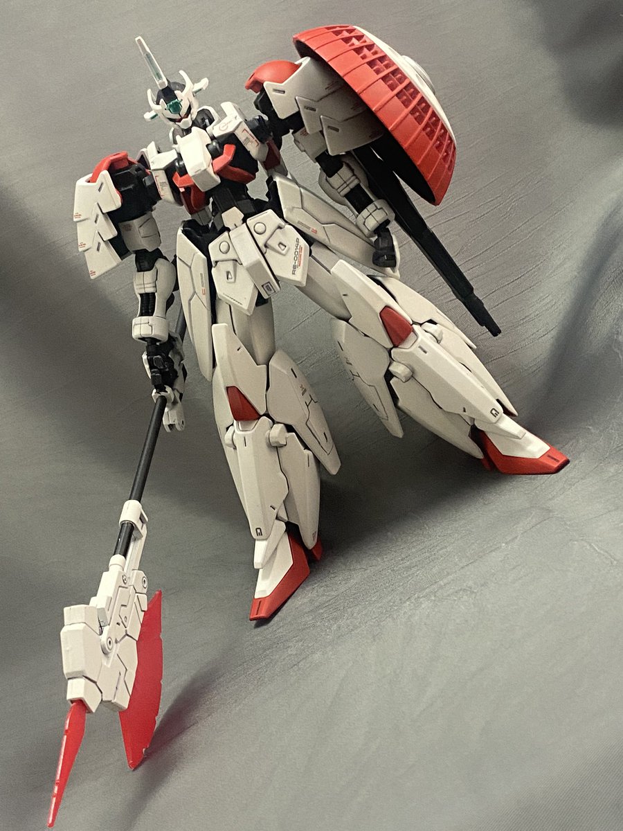 今月使って遊んでいたGBNでの自分専用ガンプラ[マルス・レウコン]これにて完成! グレイズを見つけて異形の量産機にして遊ぼう!から随分遠くに来たものだ… 必殺技は多分白いオーラで黒縄天譴明王すると思う #ガンプラ #ガンプラはどんな自由な発想で作ってもいいんだ