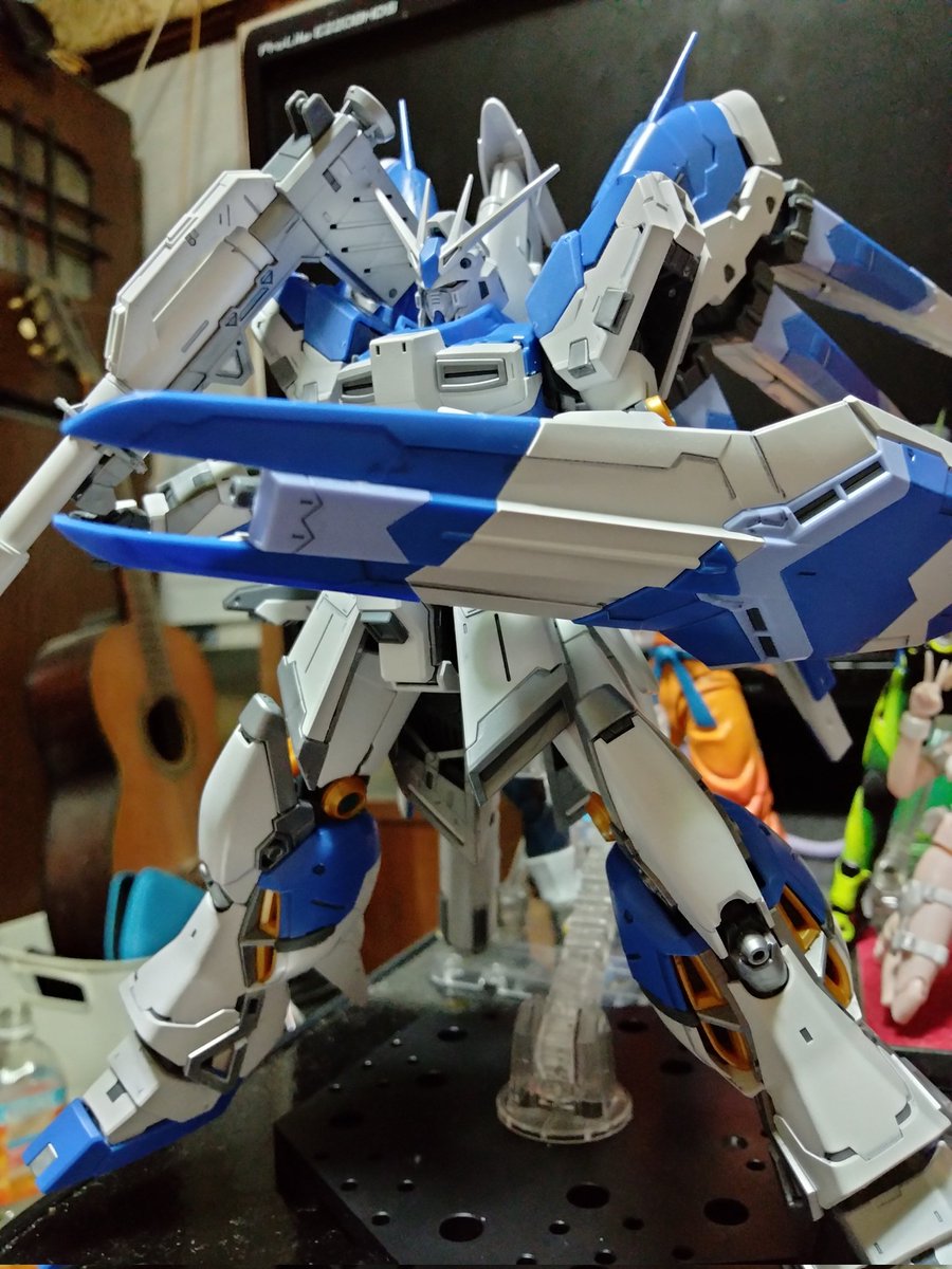 RG Hi-νガンダム ライフル、シールド、バズーカパチ組完成🎨 そしてアクションベースへの設置はアダプターを介して、なかなかいい構造ですな(´-ω-)ウム あとは鬼門のフィンファンネル😅 #ガンプラ #ガンプラ好きと繋がりたい #ガンプラはどんな自由な発想で作ってもいいんだ