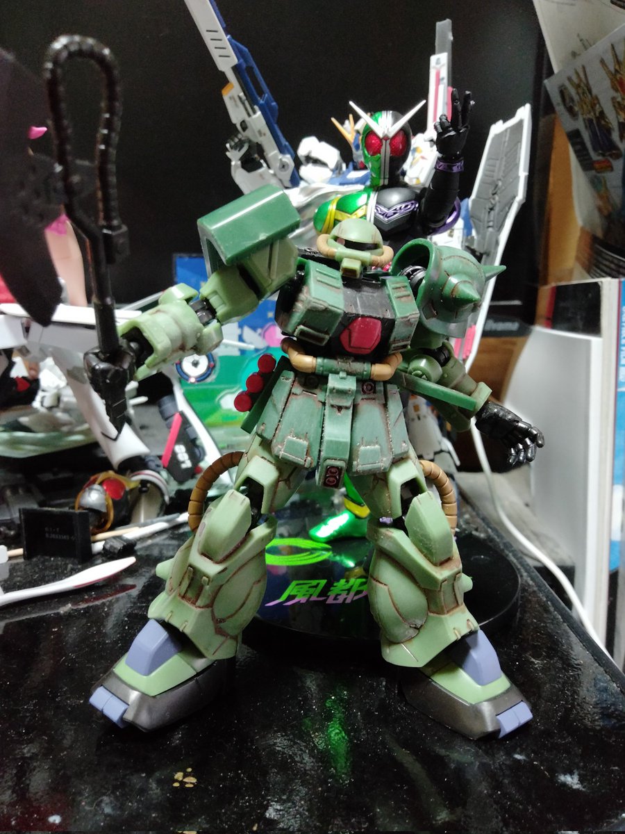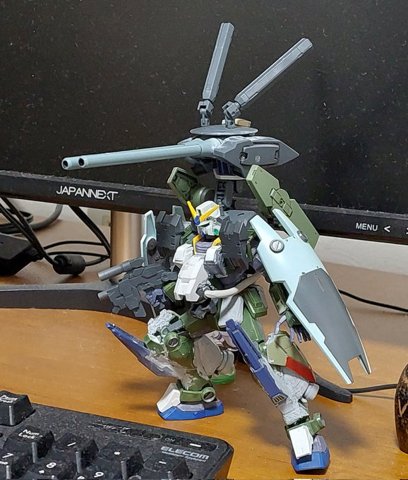 #ガンプラ #ガンプラはどんな自由な発想で作ってもいいんだ #EGガンダム 途中経過 F-03 ZEKE 通称・量産型ガンダム改【砲撃ユニット装備】をここまで仕上げました。脳内では重巡、戦艦艦娘の搭乗を想定しています。このまま駆逐、軽巡艦娘用のユニットも考えてもいきたいです。写真はまた改めて。