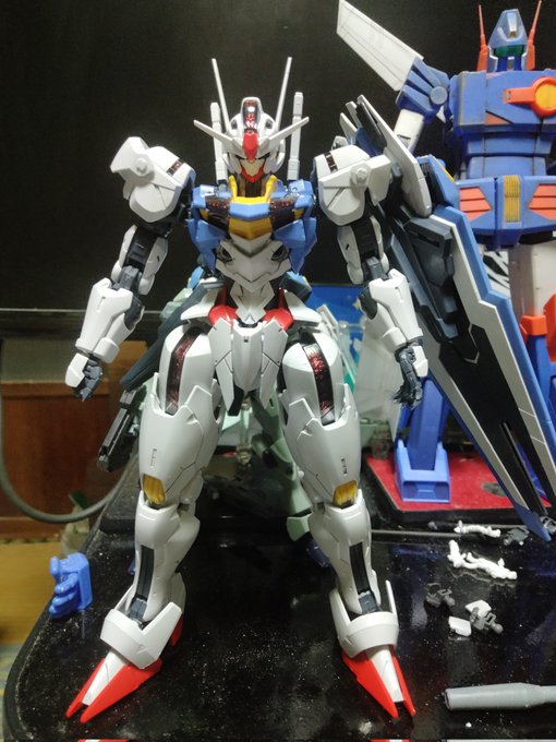 エアリアル改修型パチ組完成🎨膝関節左やっちまったー💦そしてフルメカニクスエアリアルも膝立ち☺️👍 ゴールデンウィークはコレラをじっくり仕上げてみる☺️👍 #ガンプラの画像貼るとRTされると聞いて #ガンプラ好きな人たちと繋がりたい #フルメカニクスエアリアル #水星の魔女