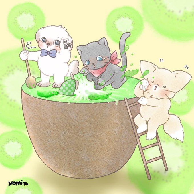 【ぷくりいぬ】9/1 #キウイの日 おはよー☀️ 今日は🥝の日! 中には酸っぱい🥝もあるから、ぼくたちが厳しく味見するよ🐶✨ フム、これは大丈夫! 🐢さん、🐱くん、掘りすぎだよっ💦 #イラスト #絵描きさんと繋がりたい #イラスト好きさんと繋がりたい #ゆるいイラスト #illustration #今日は何の日