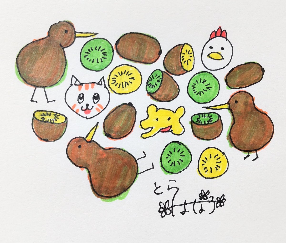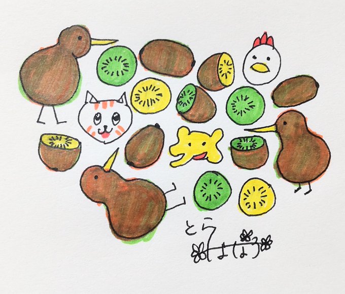 おはようございます!! #キウイの日 キウイ(鳥)に突かれないかゲーム😂 今月もよろしくお願いします!!🤗 #絵描きさんと繋がりたい #みんなで楽しむTwitter展覧会 #イラスト #油性ペン #マッキー