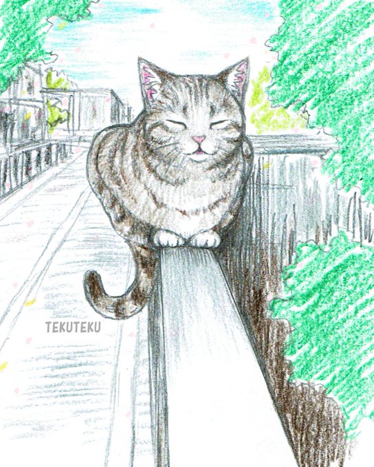クレヨン画 一枚目 ハガキサイズ 二枚目 10cm✖️10cm #ねこ #猫 #cat #browntabby #キジトラ #gato #illustrate #illustlation #イラスト #crayon #pastelclayon