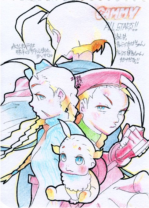キャミィオールスターズ!! あとは、キャミィおばちゃんとキャミィばあちゃんだけだな!! 赤さんキャミィは勝手にデザインしました。 水彩紙に、耐水性ボールペンとマジックペンで線画、水彩色鉛筆で彩色。 #格ゲーキャラ描こうぜ #キャミィ #Cammy #ストリートファイター #StreetFighter