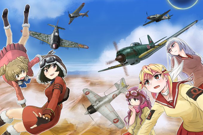 「紫電改のマキ」対「荒野のコトブキ飛行隊」夢の対決! #紫電改のマキ #荒野のコトブキ飛行隊 #羽衣マキ #古嵐蛍 #甘粕みやび #キリエ #チカ pixiv.net/member_illust.…