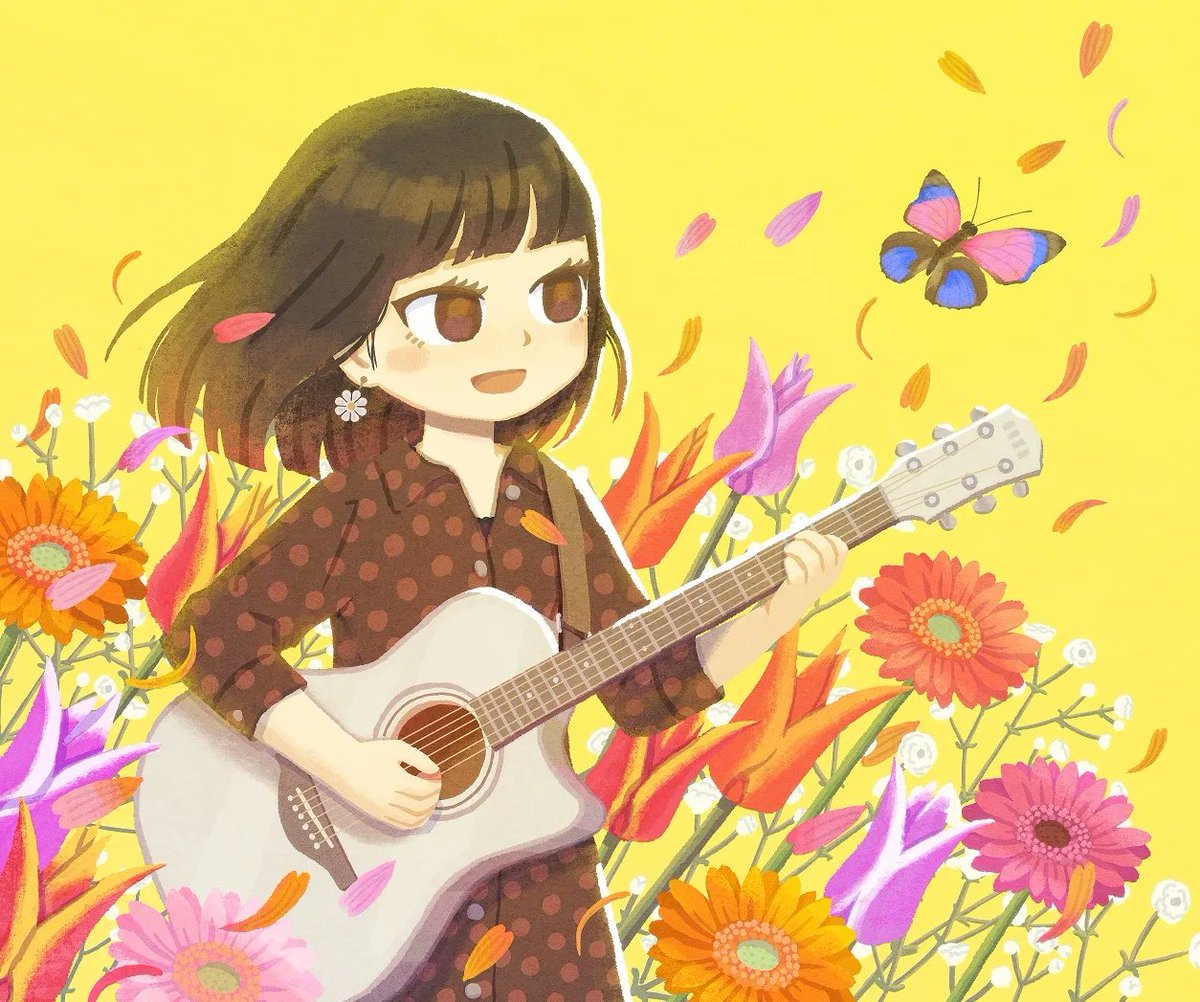 ミツアミファイヤーバードキメガール #イラスト #絵描きさんと繋がりたい #イラスト好きさんと繋がりたい #みんなで楽しむTwitter展覧会 #絵柄が好みって人にフォローされたい #ギター女子 #procreate