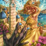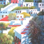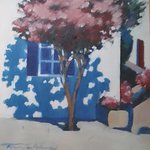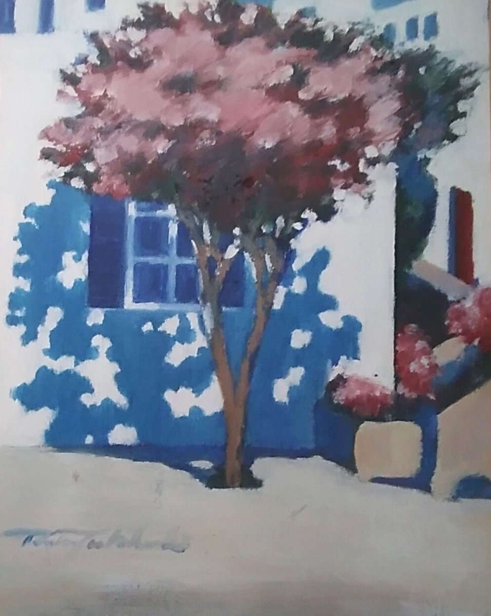 #りえこさん冒険の思い出 その419 ギリシャの島々。ミコノス島はアテネから比較てき近く訪れやすい。真っ白な家々に、ブーゲンビリアの赤紫の花がきれいな季節だった~かな? #絵 #人形 #旅 #水彩画 #スケッチ #watercolor #油絵 #ミコノス島 #ギリシャ minne.com/@ritakahashi4
