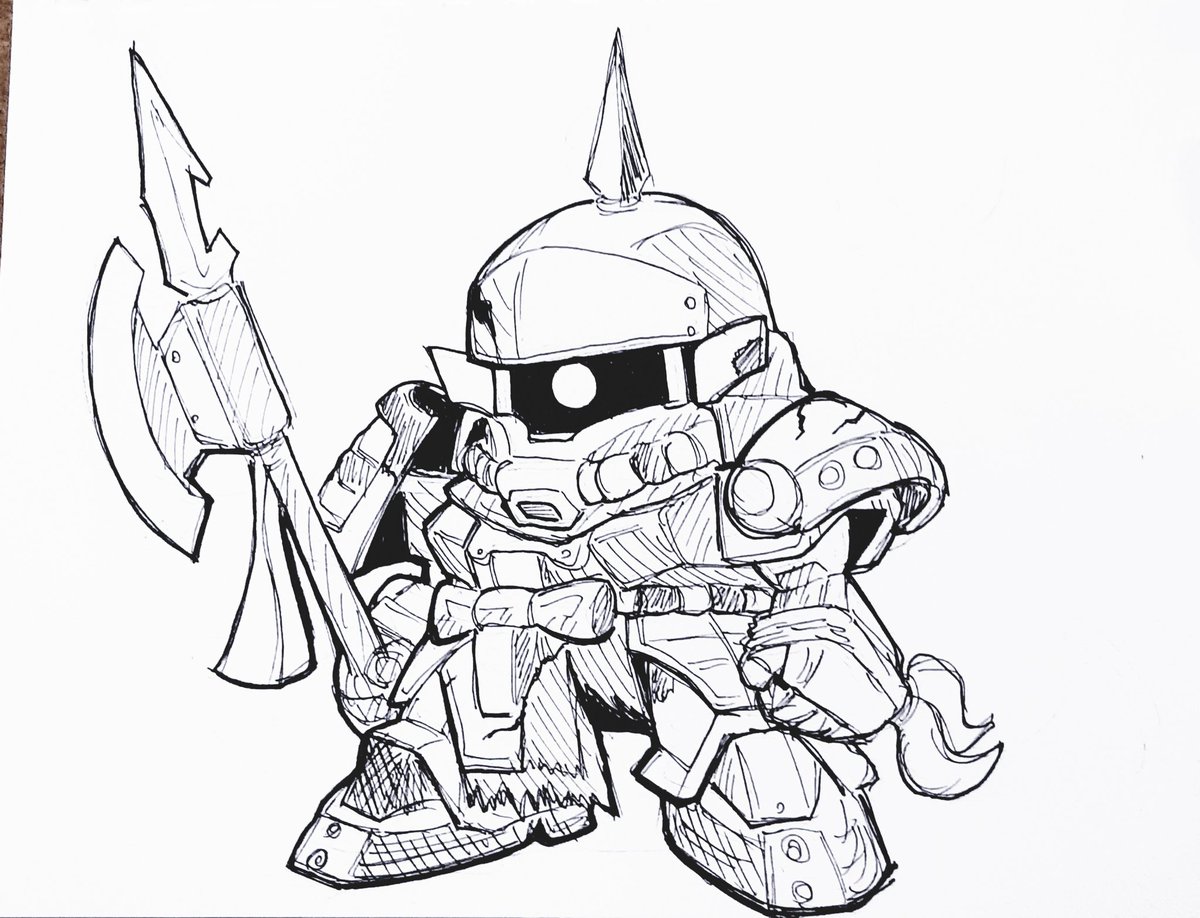 #sirenの落書き帳 #SDガンダム #ククルス・ドアンの島 観た記念にドアンザクモチーフの部隊兵! 反董卓連合軍に合流するべく旅をする劉備ガンダム達。 途中、立ち寄った村では何故か董卓軍の衣装を纏った部隊兵が村を守っていて・・・みたいな妄想