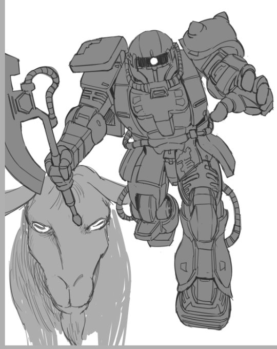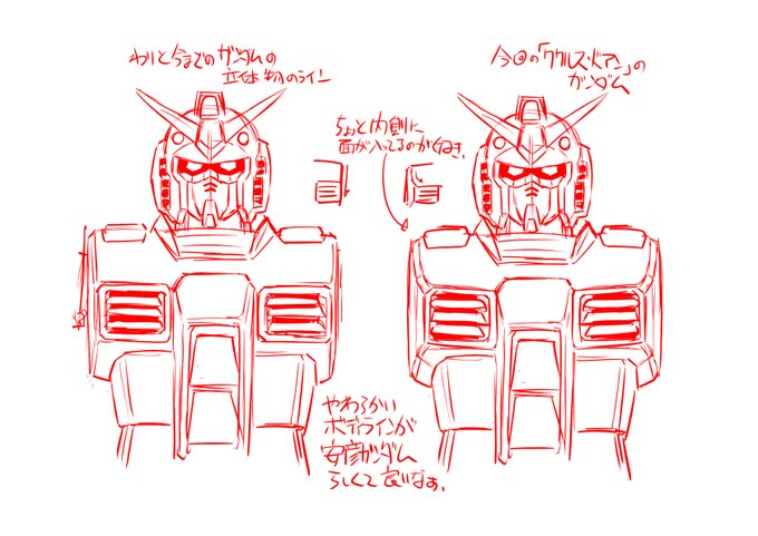 「ククルス・ドアンの島」の予告を見た時にこんなの描いてたんだった。 胸の黄色い排気口に向かって立体を絞っていく構成が安彦ガンダムっぽくて良いなあと感じたんだっけ。 #ククルス・ドアンの島