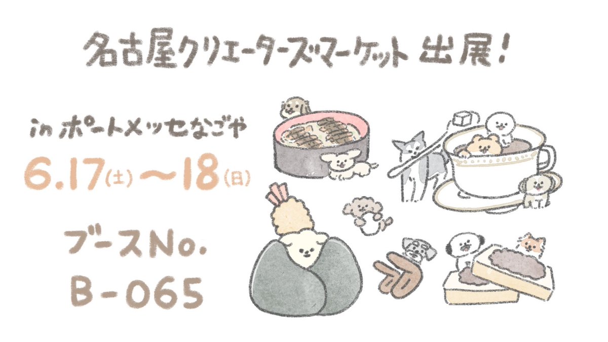 今週の週末(25(土)26(日))、 ポートメッセ名古屋にて開催されるクリエーターズマーケットに参加します☺️ 一枚目のイラストを目印にぜひお越しください!! ブース:M048、049 nagomi koubou #クリエーターズマーケット