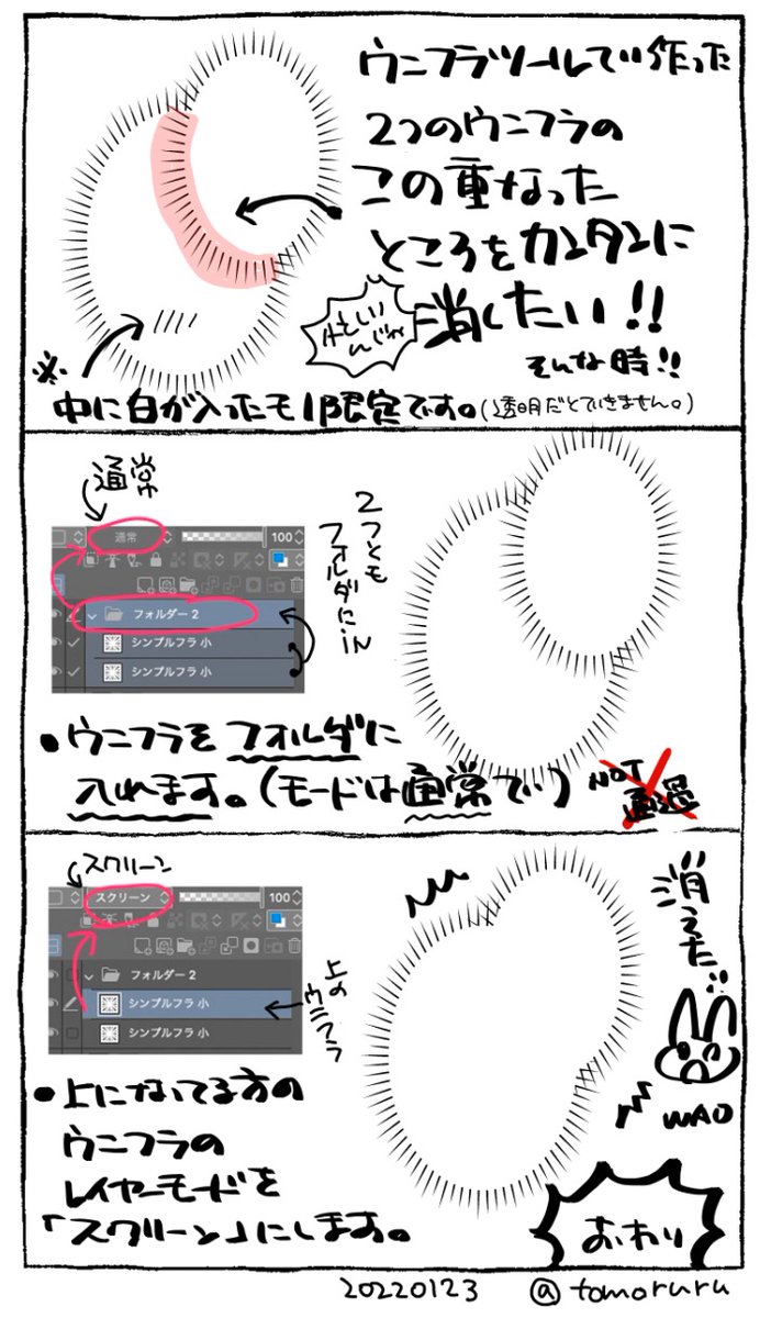クリスタモーメントまとめ(ミニ)本を作っているんですが、ページ合わせに「直線定規の目盛り、等分割が便利だよ」っての加えようとしたら…曲線定規、図形定規でも「目盛り」表示できるやん!!とたった今気づいた。#クリスタ #CLIPSTUDIOPAINT