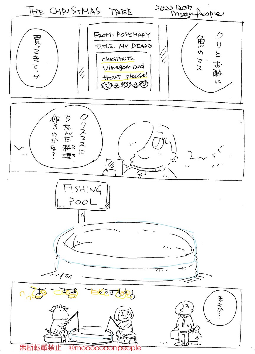 2022.12.07 THE CHRISTMAS TREE「冬の風物詩」 くり、す、ます、つり…。あっ…。 12月7日は日本で初めて🎄が飾られたってことで #クリスマスツリーの日 だそうで。 クリスマスツリーって言えばのギャグやね。 #4コマ漫画 #創作漫画 #オリキャラ #コメディ #漫画が読めるハッシュタグ