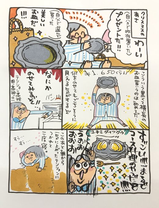 【ポップ担当日記】 今年の自分へのクリスマスプレゼントは良い感じの黒いお皿でした!これに食べ物を乗せてナイフとフォークで食べれば何でも良い感じに!ここがパーティー会場だ!!うおおおおお!!と朝から大はしゃぎした後二度寝しましたとさ。 #クリスマスプレゼント