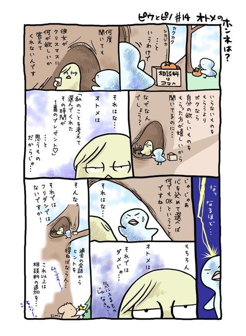 【ピウとピノ】14 新キャラ初登場です✨ 頼りになるのか否か…とりあえず相談料はかかる模様🤣 The English translation version will be posted tomorrow #漫画 #漫画が読めるハッシュタグ #イラスト #イラスト好きな人と繋がりたい #漫画好きな人と繋がりたい #恋愛相談 #クリスマスプレゼント