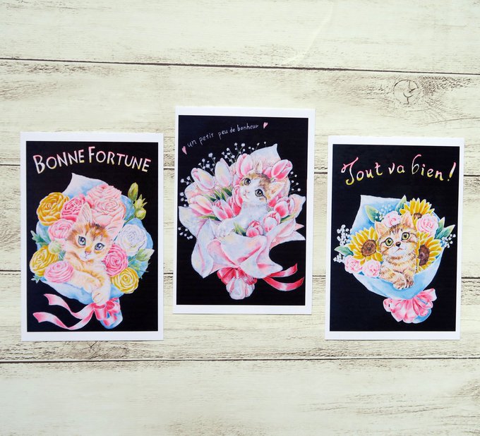 〈しあわせのねこの花束〉の三つのイラストがポストカードセットになりました😺💗🌷🌻🌹 minne.com/items/31360622 creema.jp/item/13466848/… #minne #minneで販売中 #猫 #猫好きさんと繋がりたい #猫イラスト #猫グッズ #猫 #クリーマ #Creema #Creemaで販売中 #猫の日 #にゃんだふるCreema