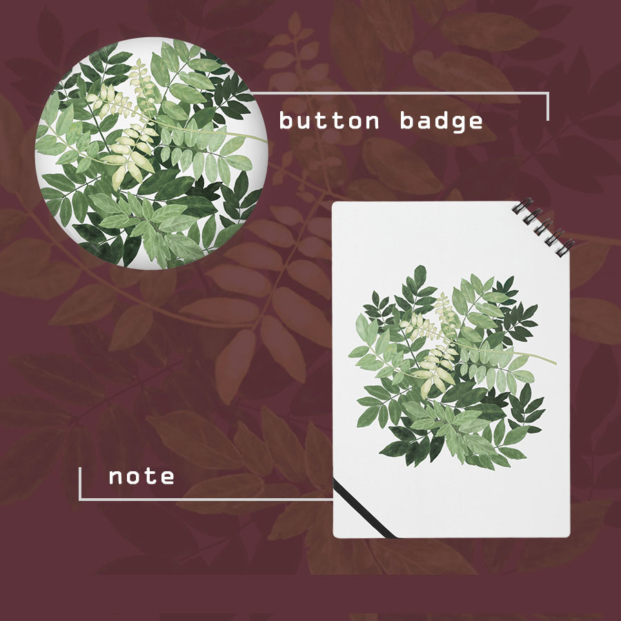 「藤の葉陰」缶バッチとノート 🌿自然派の方にオススメです🌿 🌻HIMARI堂「藤の葉陰」シリーズ suzuri.jp/jarajampot/omo… @suzurijp #SUZURIで販売中 #SUZURIのこれみて #グリーン #植物 #植物イラスト #イラスト #イラストレーター #緑 #ボタニカル