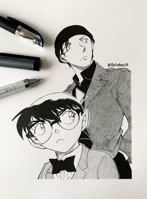 唐突に黒白の絵を描きたかったので、 赤井さんとコナン君を描きました! #名探偵コナン #緋色の帰還 #江戸川コナン #赤井秀一 #コナン好きな人と繋がりたい #絵描きさんと繋がりたい #模写