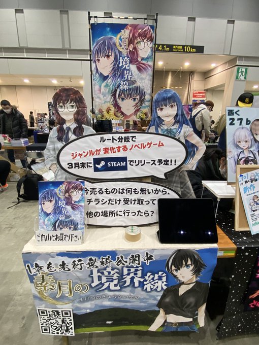 設営完了です! 3月末にリリース予定のゲームを宣伝に参りました! 無料のチラシを頒布しておりますので、少しでも興味のある方はぜひ寄って行って下さい! #コミックマーケット101 #C101 #ゲーム