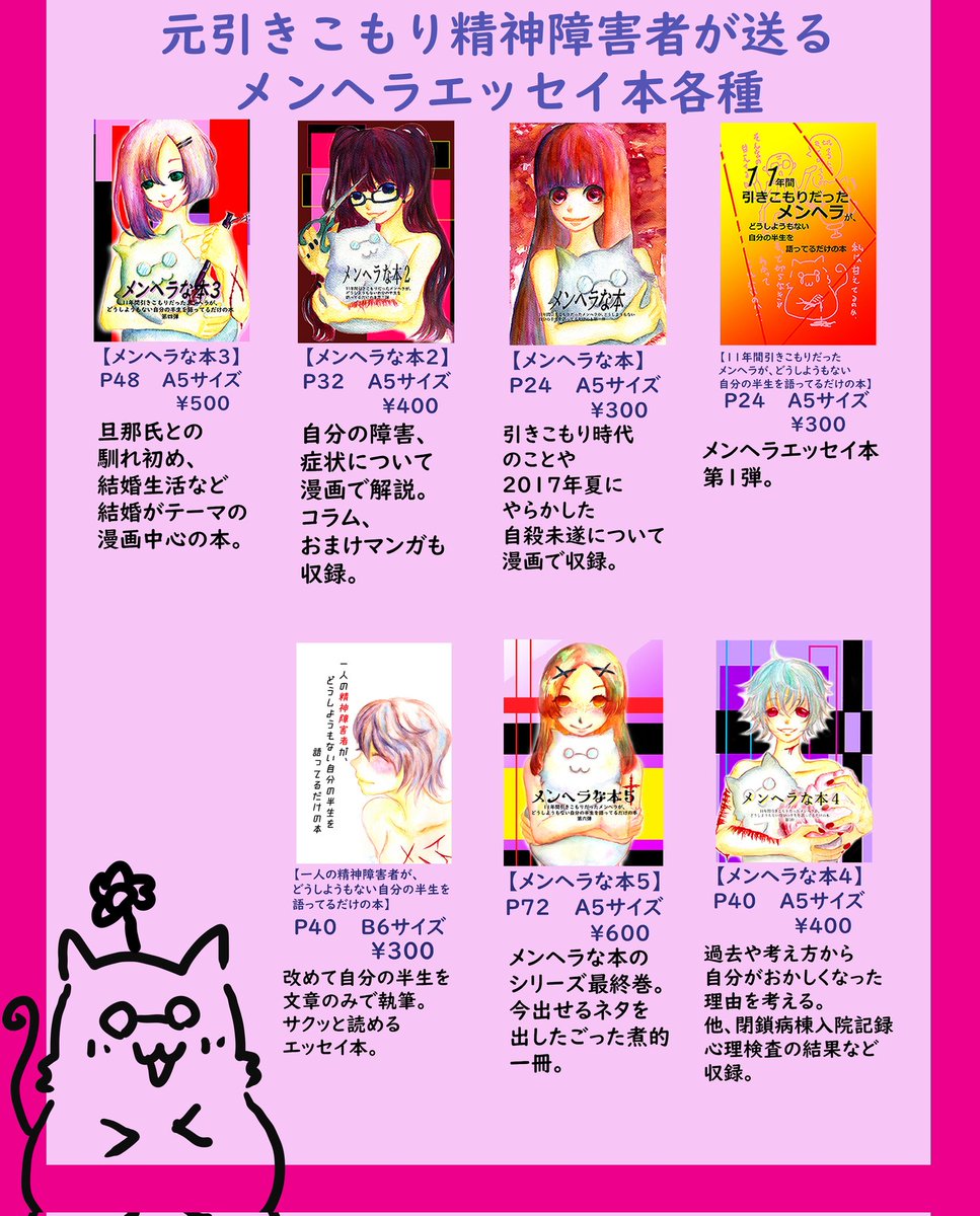 リアル精神障害者が語るちょっと変わった実話なメンヘラエッセイ本、#C101 にてFORコミニケットさん【東5ホール、へ12a】で委託してもらってますー。よかったらお立ち寄りを〜。 #コミケ101 #コミックマーケット101