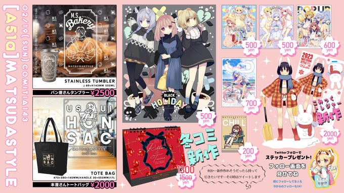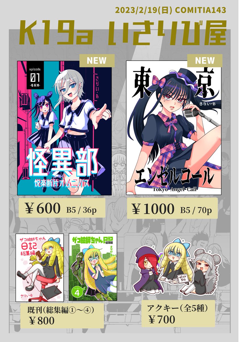 【告知】2/19コミティアお品書きになります。 新刊2冊、既刊も少し持っていきます! K19a「いさりび屋」でお待ちしてます。 #コミティアお品書き #コミティア143 #COMITIA143