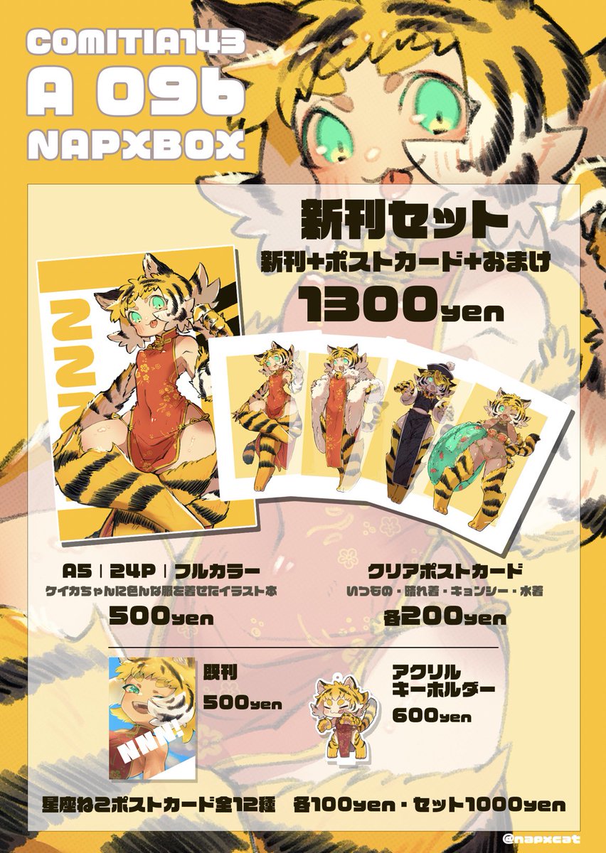 コミティア143のお品書きです! \\\\└('ω')」//// 後日通販も予定してます📮 #COMITIA143 #コミティアお品書き twitter.com/napxcat/status…