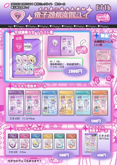 【2023/5/5 コミティア144 お品書き】 東3ホール スペース「E11b」 電子通信空間ユイ 商品の写真や他の詳細などは日にち分けて続々ツリーに載せる予定! 無配のトレカだけでも是非どうぞ~ 3枚目のポスター2枚も先着順で販売します よろしくね #コミティア144 #コミティアお品書き #COMITIA144