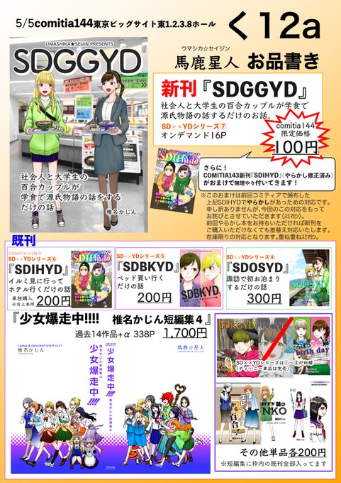 5/5コミティアのお品書きになります。お品書きにもありますが、前回新刊でやらかしがあったのですが、今回の対応でお詫びとさせていただきます。勝手ながらご了承ください。 #コミティア144 #コミティアお品書き #COMITIA144