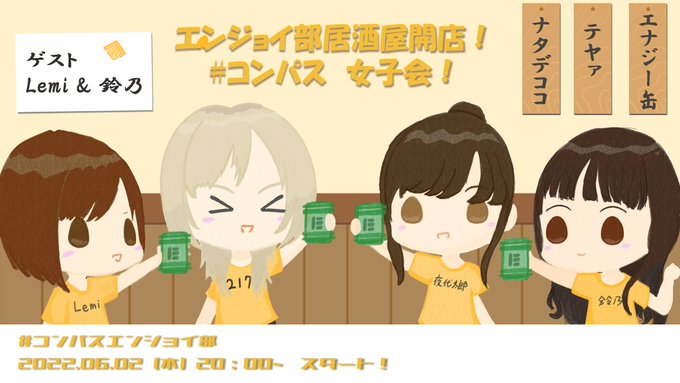 はじめて、エンジョイ部の 開始前イラストを描きました! エンジョイ部居酒屋開店! #コンパス 女子会!【ゲスト:Lemi&鈴乃】 live.nicovideo.jp/watch/lv336992… #コンパスエンジョイ部