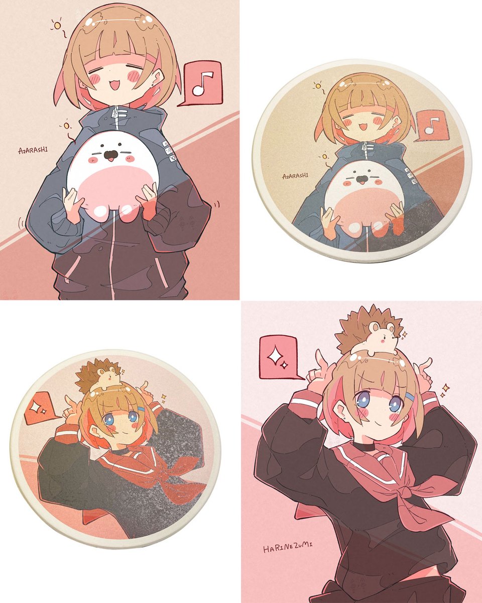 Illustrator:Haる(@Haru57928031 ) 『アザラシさん』 『ハリネズミさん』 コースターの販売スタート♪全6種です。 shop.fact101.jp/haru 是非お家にお出迎えを。 #コースター #イラスト