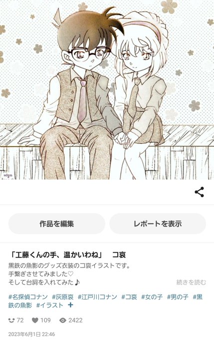 黒鉄の魚影が良すぎてコ哀を頑張って描いたからコ哀祭りかな😳♥️ 2023年もう半分終わるの😂早すぎん💦?? 灰原哀ちゃんの年があと半分しかないなんて… 最近カラー少ないけどめちゃ頑張っているのよ😂 …コナンランドのコ哀撮影会行かせて🥺 #2023年自分が選ぶ今年上半期の4枚 #コ哀 #イラスト