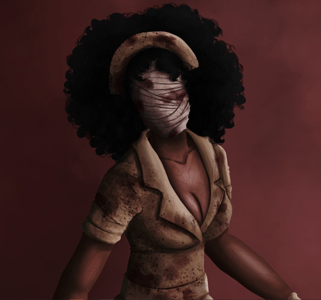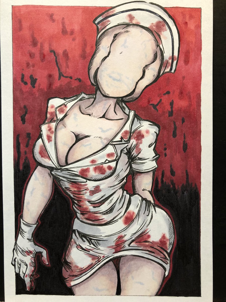明日はアイコンに使ってるイラスト上げます✨ 皆さんの素敵な作品勉強にさせてもらってまっす! 怖いイラ上げます。苦手な方すみません💦昔描いたヤツです。 顔怖いので包帯で隠してます😅 #バブルヘッドナース #サイレントヒル #ホラー #絵描きさんと繫がりたい #イラスト