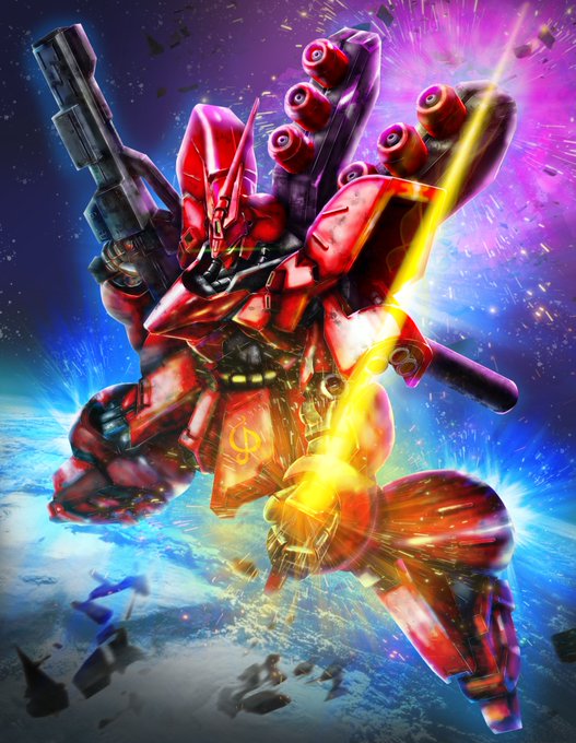 #赤い彗星 生誕祭5 「#機動戦士ガンダム #逆襲のシャア 」より、#シャア・アズナブル 総帥(34歳)。 #サザビー 描くのムズ過ぎぃ😇😇 こんな複雑な機体をデザインする人も、色んな動きや角度で描く事が出来るアニメーターの人もすげい😇😇 #みんなで楽しむTwitter展覧会 #イラスト