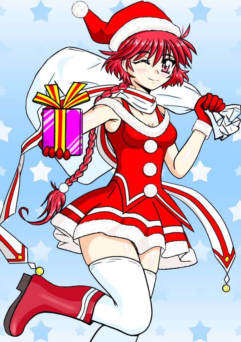 先日ラクガキしたやつがこうなりました🎵 アナログで下描きしないで、最初から最後までデジタルで仕上げ。 光『フォッフォッフォ。良い子にしてたかね?プレゼントだよ🎵』 #魔法騎士レイアース #サンタコスプレ #サンタクロース