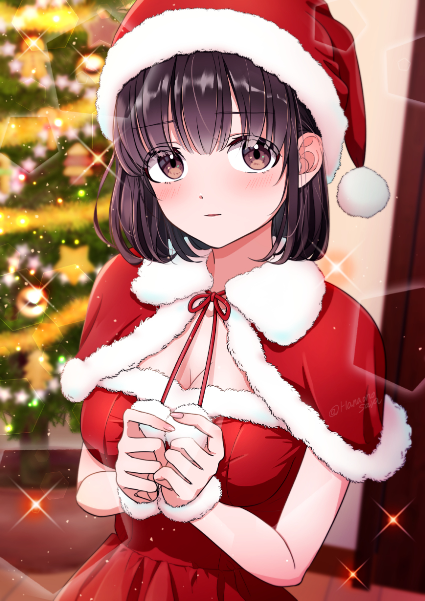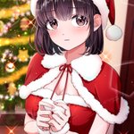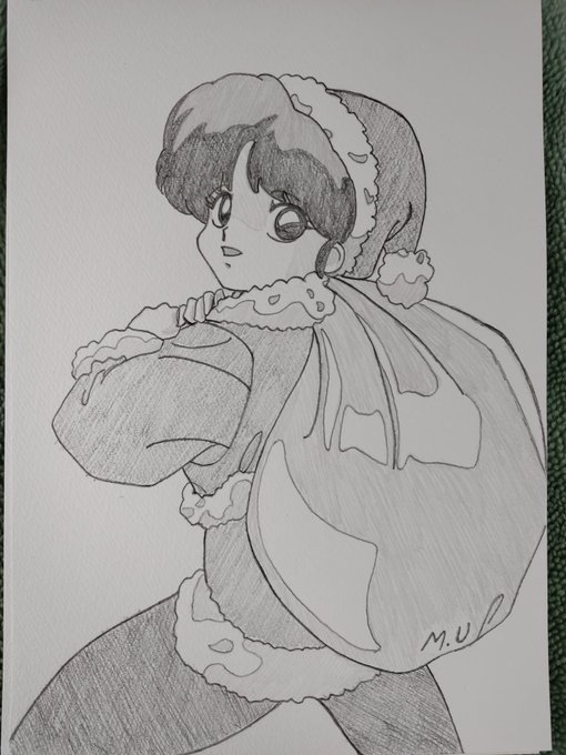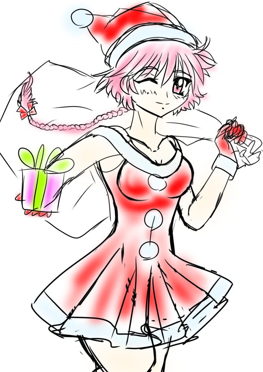 少し前にアップしたのを再掲。 ちょこっとだけ加筆修正しています。 くろたま(@krtmgpl)先生による塗り絵用線画(お盆に配布)をクリスマスアレンジ。 #妖怪雨女による神隠し #MerryChristmas2021 #サンタコスプレ #くりすます