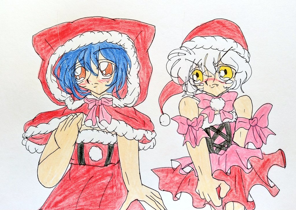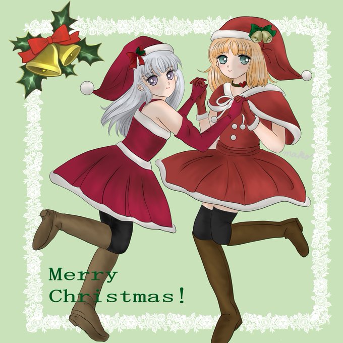 ハッピーメリークリスマス! どちらのサンタに来て欲しい?(過去絵) #サンタコスプレ #鮎川まどか #檜山ひかる #クリスマス #きまぐれオレンジロード #過去絵 #イラスト #みんなで楽しむTwitter展覧会