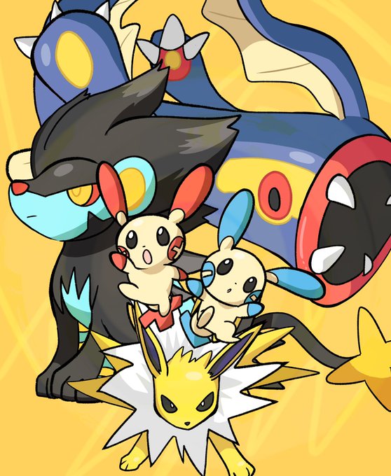 好きな電気ポケモンちゃんたち⚡️ #ポケモン #ポケモンイラスト #Pokemon #絵描きさんと繋がりたい #ポケモン絵描きさんと繋がりたい #レントラー #シビルドン #サンダース #プラスル #マイナン #いいねかRTで気になった人フォローする