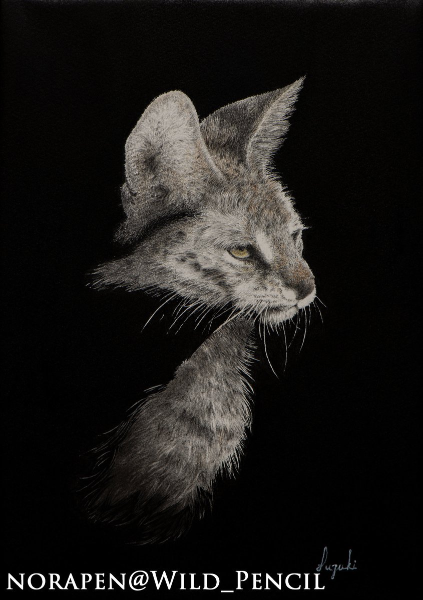 デッサンから散々失敗して更に描き直して何とか描けたサーバルキャットです、耳が大きいのと細くて長くてめっっちゃ長い足が特徴です笑 #イラスト好きと繋がりたい #絵描きさんと繋がりたい #水彩画 #サーバルキャット #動物画