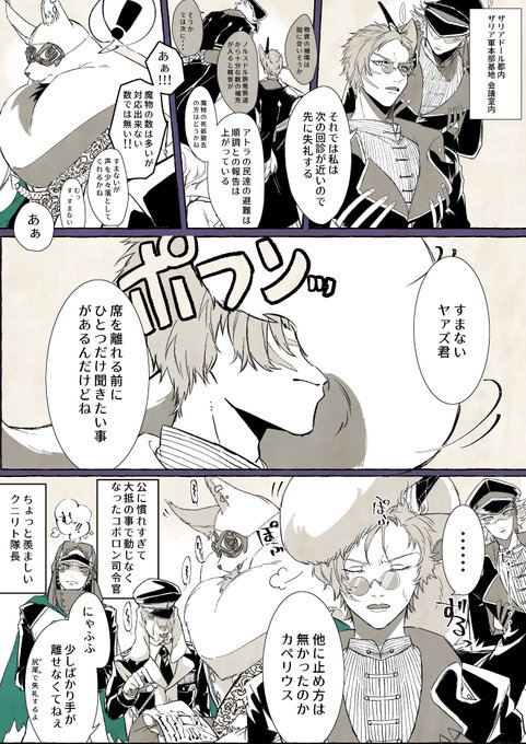 【PFSOZ】猫の手は足りない【交流漫画】 | 獣ノ屋 #pixiv pixiv.net/artworks/10320… #ザリア軍 #PixivファンタジアSOZ ッシャオラァ!!! 日付跨ぐ前に完成させたぞザリアの名物隊長達だ!!!(?)みてくれ私の推しメンズ達を