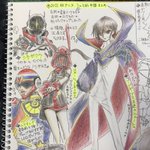 今期アニメでロボ描き初挑戦、線画のうち紙の左側は変身スーツもの(とかいう?)描いてます。#ルルーシュ は塗り途中、部分抜粋にて☺️ #fanart #落書きギルド №16 #みんなで楽しむTwitter展覧会 #色鉛筆 #シキザクラ #ムテキング #ScarletNexus #絵描きさんと繋がりたい