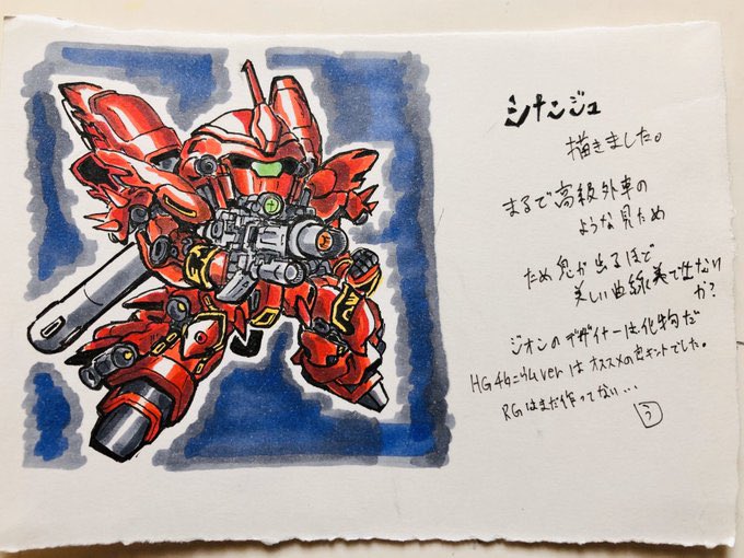 クロブのシナンジュが超強化きて嬉しいのでついつい描いた。 欲を言えば前覚醒技とかでネオジオングとドッキングしてほしかったけど。 こうして「いつか清書するガンダムシリーズ」の下描きが増えていくんだなあ。 #シナンジュ #絵描きさんと繫がりたい #絵師さんと繋がりたい
