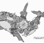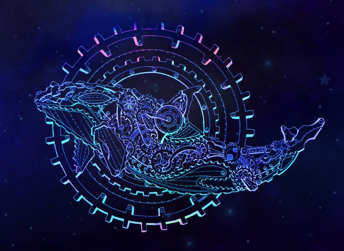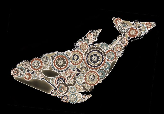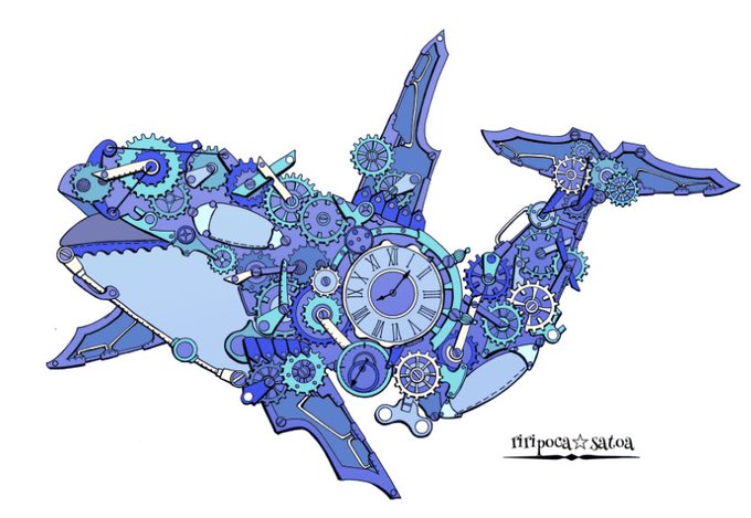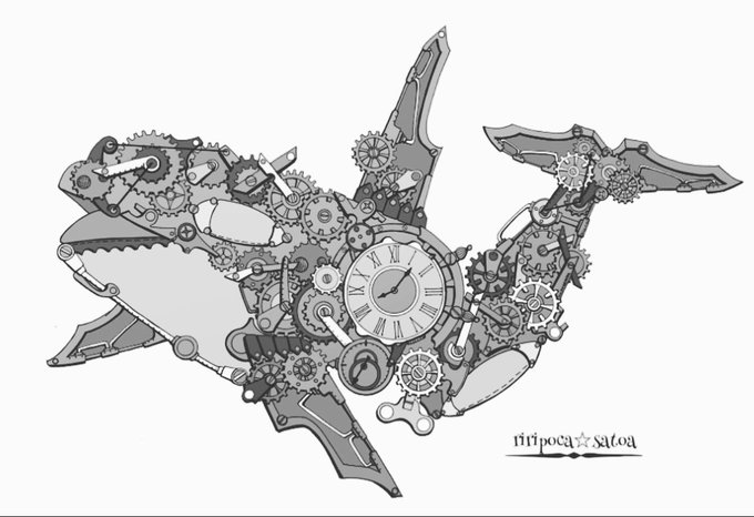 お疲れ様でした✨✨ 大雪ですので皆様お気をつけて下さい😭 ⚙シャチ⚙ #歯車イラスト #スチームパンクイラスト #シャチ #ペン画 #アトリエの系譜S #絵柄が好みって人にフォローされたい