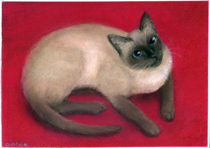 【シャムとサファイア】 150×150mm, カラーボード, 色鉛筆・スワロフスキー 『愛しのシャム猫展』 4/7-16 12:00-17:00 ねこの引出し(東日本橋) #シャム猫 #猫好きさんと繋がりたい #猫の絵