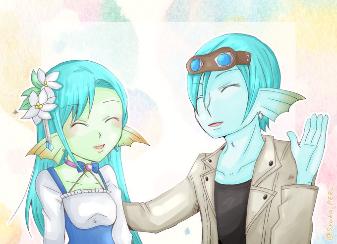 #シュカ絵 #エンリエント創作 プニさんの世界の魔力印の設定が魅力的過ぎて好き過ぎて勝手に描かせて貰っちゃいました!解釈違いがあったらすみません💦楽しかったですありがとうございますー!☺💗 twitter.com/puni_dq10/stat…