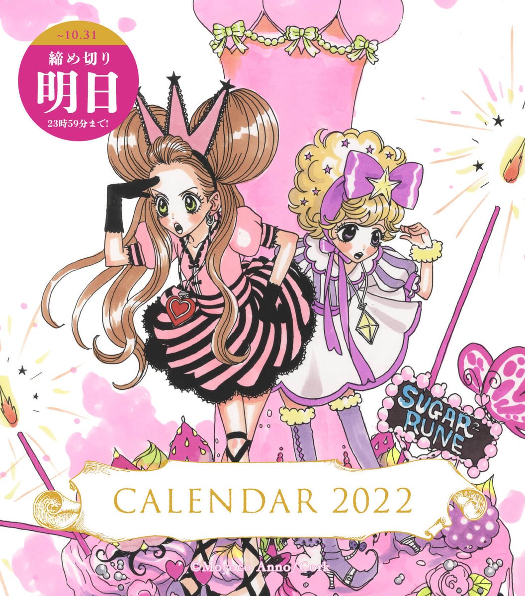 ✨✨ #安野モヨコカレンダー2022 ✨✨ 予約は明日まで‼️ 今年も壁掛けタイプと卓上タイプの 2種類のカレンダーをご用意💞 卓上タイプには、 #シュガルン のかわいい世界観を ギュッと詰め込みました💗 まるでイラスト集のようなカレンダーです🎶 #シュガシュガルーン corkshop.jp/corkinc/lp/moy…