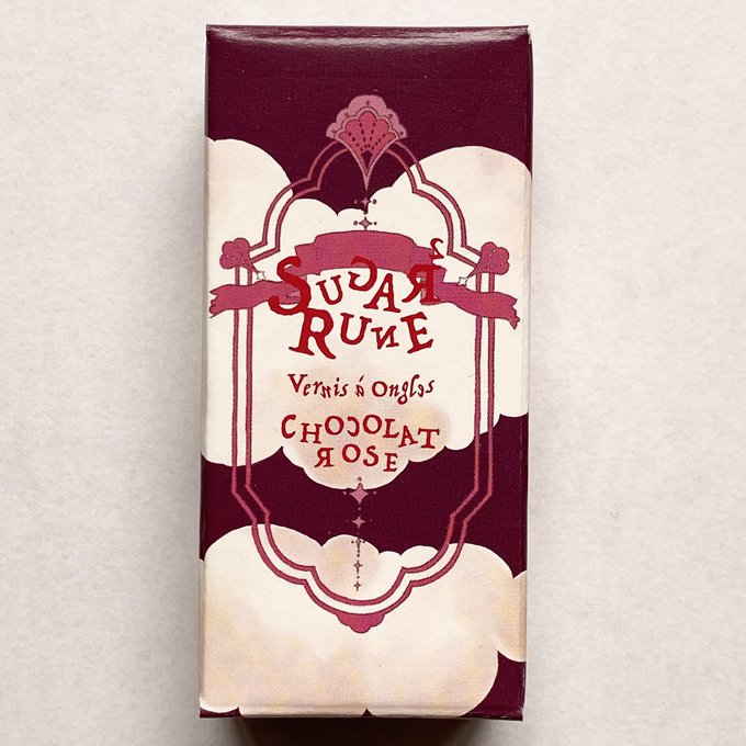 #シュガシュガルーン ネイルポリッシュの外箱✨ ショコラローズの箱の色を黒から ネイルと同じ薔薇色に変更しました! 雲にはグラデーションを追加💖 この箱にさらに シルバーの箔押し印刷をします🌟 (スタッフ珠) #シュガルン #ネイル