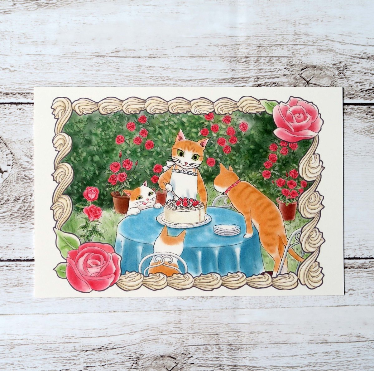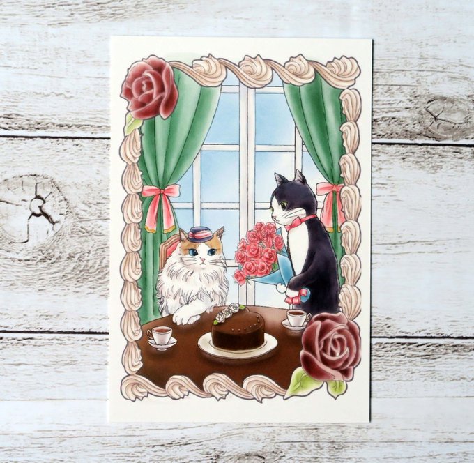 スイーツの名前を持つ薔薇とスイーツと猫ちゃん達のイラストが、ポストカードになりました🌹😺💗🎵 3枚セットで #minne で販売しています😊 ぜひご覧ください💕 minne.com/items/29788692 #猫と薔薇のイラスト #猫好きさんと繋がりたい #猫 #ショコラ #フレジェ #ショートケーキ