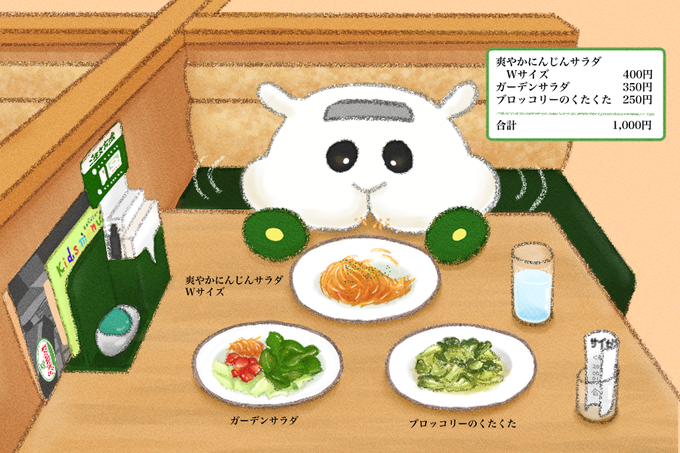 気付いたらサイゼリヤ1000円チャレンジに成功していたシロモを描きました。 | いぬいしずか #pixiv #モルカー #PUIPUIモルカー #モルカーファンアート #サラダ #シロモ #サイゼリヤガチャ #サイゼリヤ #おめでとう pixiv.net/artworks/94439…